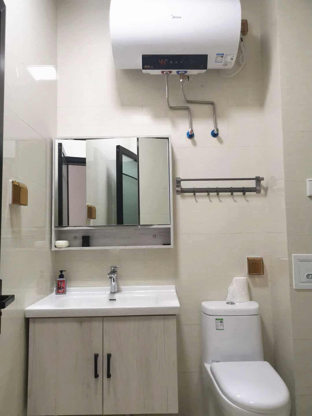 房間內(nèi)被褥、床單等生活用品,樣樣都有;衣柜、鞋柜、儲物柜,柜柜齊全;獨(dú)立衛(wèi)浴,無線寬帶,觀景陽臺,一應(yīng)俱全,真正實(shí)現(xiàn)了“酒店式公寓,員工拎包入住”。