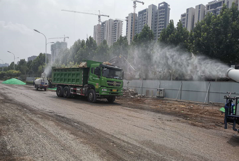 土方開(kāi)挖采用濕法作業(yè),使用4臺(tái)12立方米水車,6臺(tái)三輪水車進(jìn)行路面降塵工作
