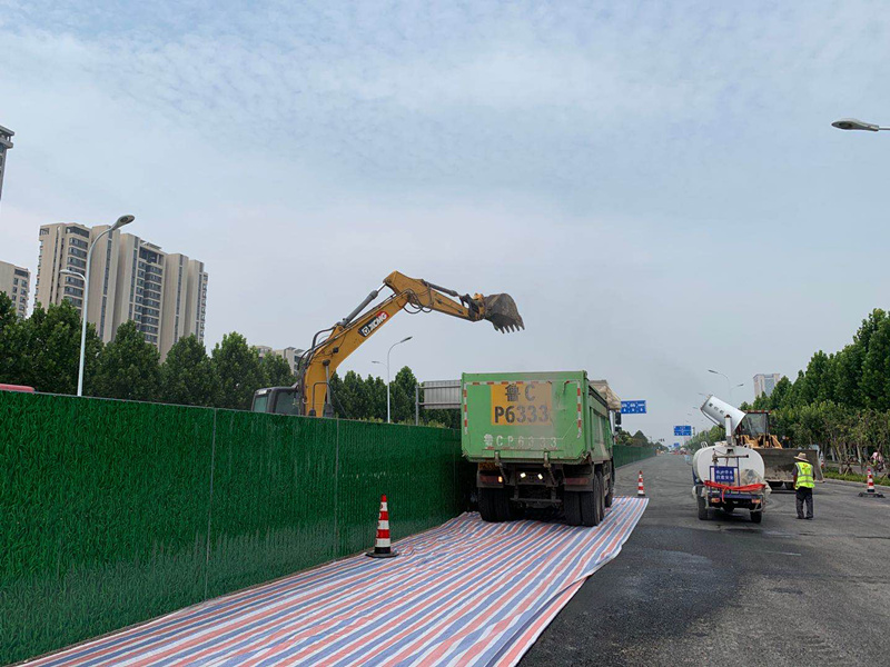 采用標(biāo)準(zhǔn)化800目防塵網(wǎng)對(duì)施工過(guò)程中垃圾進(jìn)行覆蓋,避免產(chǎn)生揚(yáng)塵