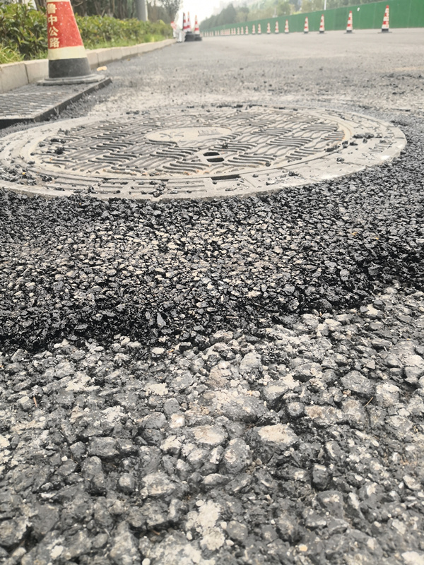 為防止“跳車”對(duì)井邊部進(jìn)行瀝青找補(bǔ)
