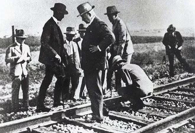 1931年9月18日夜,日本關東軍鐵路守備隊柳條湖分遣隊隊長河本末守中尉為首一個小分隊以巡視鐵路為名,在奉天(現(xiàn)沈陽)北面約7.5公里處,離東北軍駐地北大營800米處的柳條湖南滿鐵路段上引爆小型炸藥,炸毀了小段鐵路,并將3具身穿東北軍士兵服裝的中國人尸體放在現(xiàn)場,作為東北軍破壞鐵路的證據(jù),誣稱中國軍隊破壞鐵路并襲擊日守各隊。