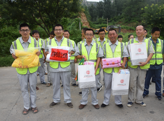 慰問會上,劉蓬、翟乃利、王興等領(lǐng)導首先詳細了解了施工人員、農(nóng)民工們的勞動保護、安全生產(chǎn)保障、工作時間、飲食等情況,向他們轉(zhuǎn)達了市交通局、市公路局以及市總工會的親切慰問。并叮囑各單位負責人要做好防暑降溫工作,根據(jù)氣溫情況,適當調(diào)整工作時間,科學合理安排作息時間,為一線施工人員營造一個良好的工作環(huán)境,確保一線員工在高溫天氣下的安全和健康,做到工作防暑“兩不誤”;希望廣大一線員工在高溫季節(jié)一定要注意休息,做好自我調(diào)節(jié),做到勞逸結(jié)合,采取一些必要防暑舉措。