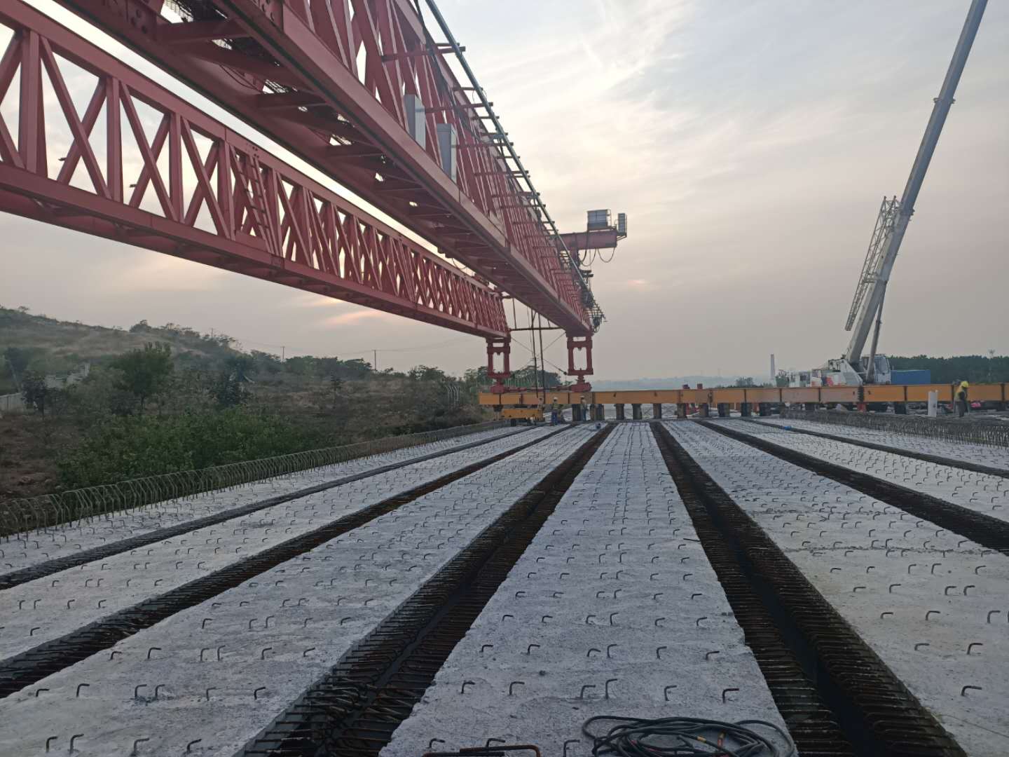 由于50米T梁運(yùn)輸條件的種種限制,加之涉鐵項(xiàng)目更為嚴(yán)苛的要求,T梁梁場選址經(jīng)歷了多次變動。在項(xiàng)目部的不懈努力下,經(jīng)過與涉鐵單位一次次談判和專家論證上,項(xiàng)目部科學(xué)謀劃,最后將主線路基作為梁場,確保了T梁順利生產(chǎn)。梁板架設(shè)過程中,根據(jù)施工條件,克服了種種困難,合理安排施工計(jì)劃,精心組織施工,確保了梁板架設(shè)任務(wù)安全順利完成。