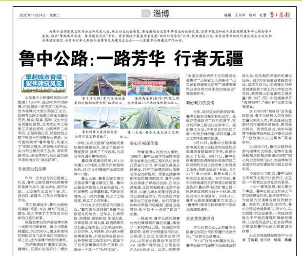 為展示淄博建筑業(yè)優(yōu)秀企業(yè)和風(fēng)采人物,樹立行業(yè)社會(huì)形象,營(yíng)造激勵(lì)企業(yè)家干事創(chuàng)業(yè)的社會(huì)氛圍,淄博市住房和城鄉(xiāng)建設(shè)保障服務(wù)中心聯(lián)合魯中晨報(bào),推出“擎起城市脊梁 聚焦建筑風(fēng)采”專欄。緊緊圍繞開展高質(zhì)量發(fā)展“樹標(biāo)對(duì)標(biāo)奪標(biāo)”行動(dòng),聚焦建筑行業(yè),宣傳淄博市新時(shí)代建筑業(yè)企業(yè)文化和品牌建設(shè)典型,2020年11月24日專欄第九期特別推介了淄博市優(yōu)秀建筑業(yè)企業(yè)———山東魯中公路建設(shè)有限公司。全文內(nèi)容如下: