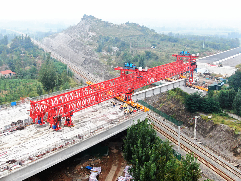2020.08.26  跨瓦日鐵路分離立交開始架設(shè)第一片T梁,涉鐵工程施工開始進(jìn)入橋面系施工階段。