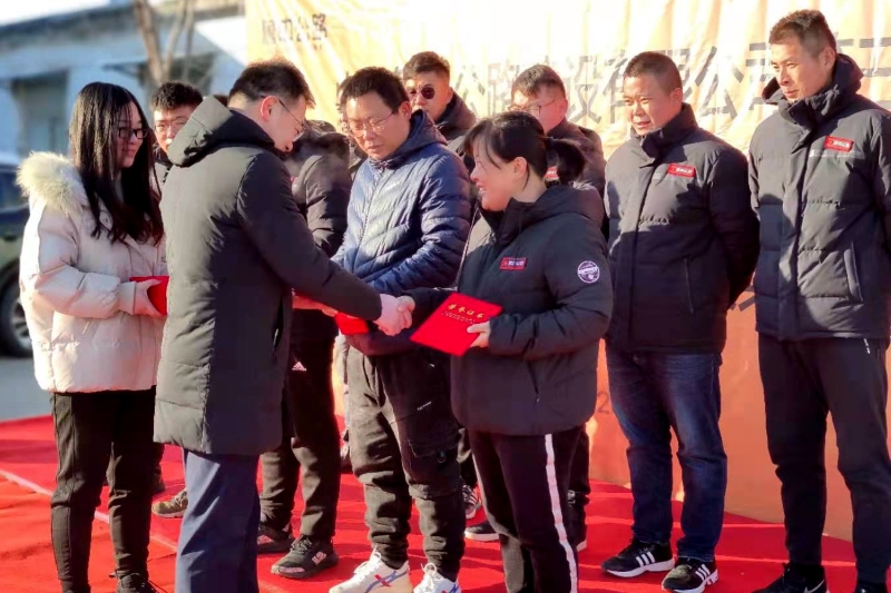考慮到當(dāng)下疫情防控工作,會議在魯中公路淄川拌合站院內(nèi)召開,分公司經(jīng)理為十三位標(biāo)兵送上誠摯的祝賀并當(dāng)場頒發(fā)榮譽(yù)證書和獎勵紅包。標(biāo)兵代表發(fā)言向所有領(lǐng)導(dǎo)、同事表達(dá)感謝,感謝大家一年來的無私協(xié)作和支持,同時向第三工程公司全體員工發(fā)出勠力同心再戰(zhàn)2021的倡議。