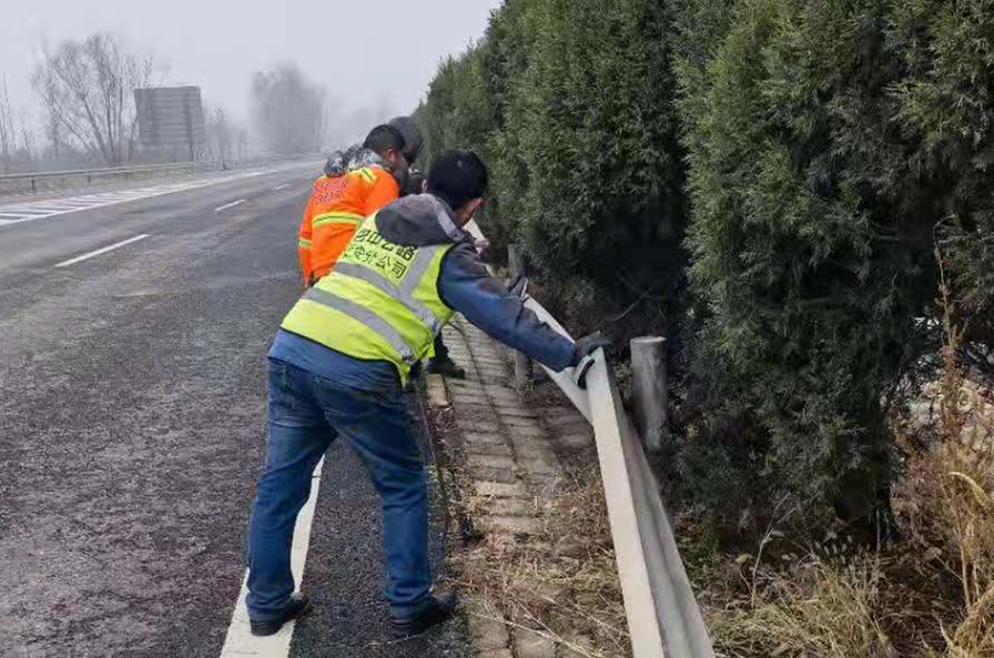 組織人員對公司交安設(shè)施進行盤點,將目前可利用的護欄等交安設(shè)施運回。隨后集中力量參與到周村服務區(qū)施工建設(shè)中。