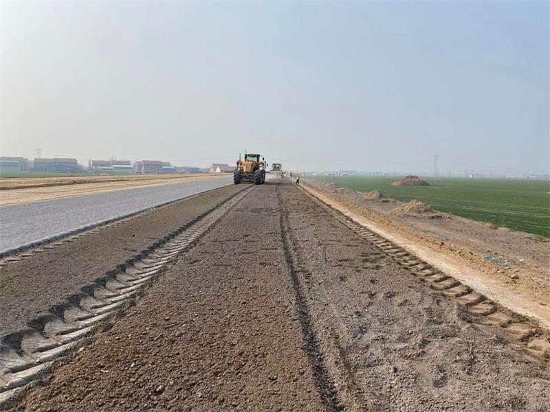 第一項目部正在進行K90+570-790右幅4%水泥土(第一層)試驗路施工工作。