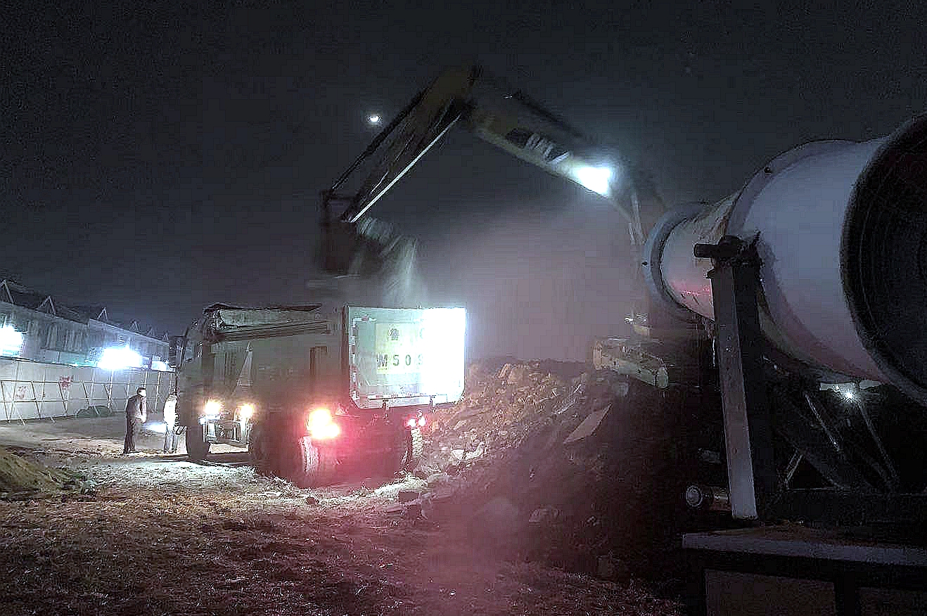主路垃圾基本外運(yùn)完成,正在進(jìn)行路床整形,即將開展灰土基層施工。