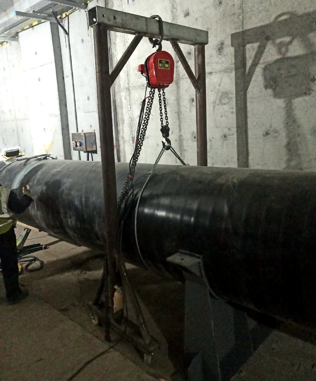 利用吊架對管線接口進行精確調整,保證其同心水平