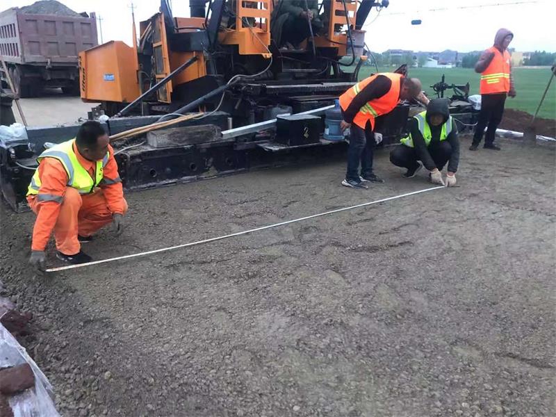 攤鋪過程中,質檢人員對攤鋪面的橫陂度、寬度、松鋪厚度、平整度等相關技術指標及時進行了跟蹤檢測,確保各項技術指標符合規(guī)范要求。