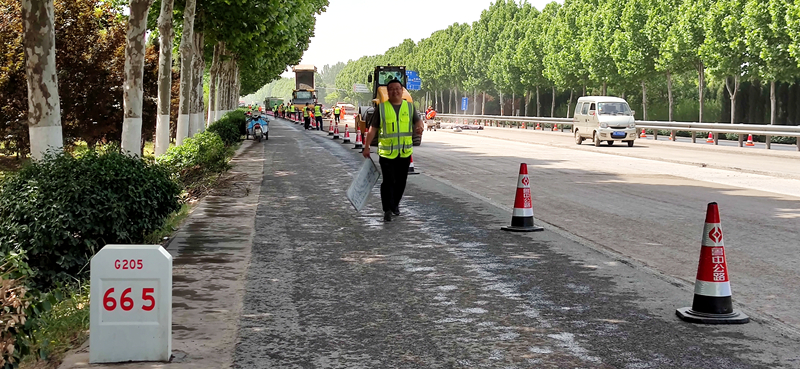 5月17日,第三工程公司接到G205中修工程任務(wù)后,立即組織人員進(jìn)場(chǎng),在工地附近就近駐扎,所有人員迎難而上,采取“開(kāi)工即大干,起步即沖刺”的工作方式,5月18日早5點(diǎn)開(kāi)始人員機(jī)械隨即展開(kāi)S102至文昌大道段路面銑刨與病害處理處理施工。