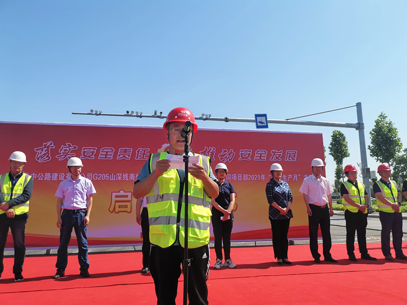 G205項目改建辦項目代表在儀式上提出兩點安全工作要求。一是提高認(rèn)識,充分認(rèn)清開展好“安全生產(chǎn)月”活動的重要意義。二是強化活動主題,扎實開展好各項活動,持續(xù)推進安全生產(chǎn)入腦入心、見行見效,轉(zhuǎn)化為落實安全生產(chǎn)責(zé)任的自覺行動,全力維護安全生產(chǎn)形勢穩(wěn)定,為慶祝建黨100周年營造良好安全環(huán)境。