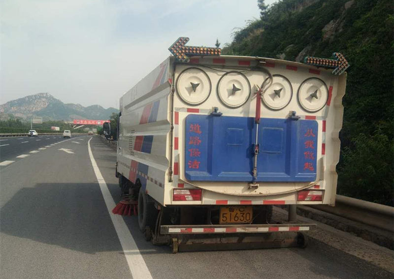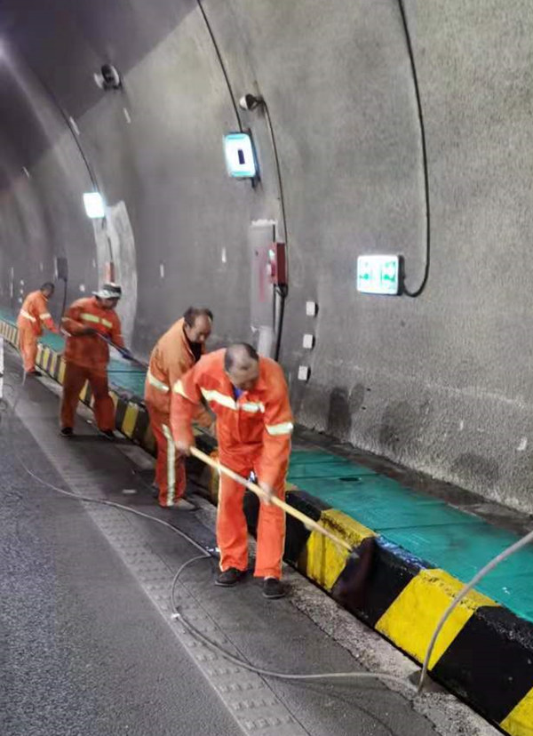 養(yǎng)護(hù)員沖刷疏通橋梁泄水孔