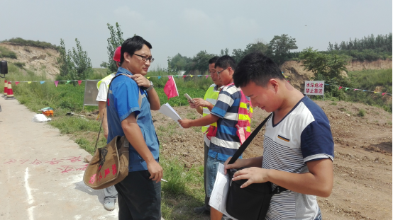 S102工程監(jiān)理處監(jiān)理候工參加二分部小橋涵現(xiàn)場(chǎng)技術(shù)安全交底,在詳細(xì)閱讀技術(shù)、安全交底資料后一同測(cè)量原地表數(shù)據(jù)。標(biāo)志著橋涵工程正式開(kāi)始展開(kāi)施工工作。