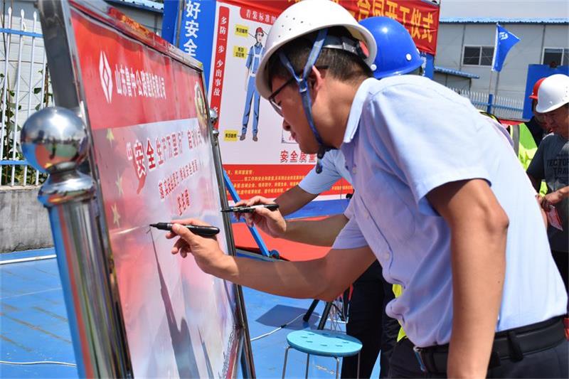 儀式開始,各隊伍整齊列隊。儀式上山東魯中公路建設有限公司第二工程公司經(jīng)理李眾作出發(fā)言:“能夠承建此項目,我們十分珍惜,并深感使命光榮、責任重大!我們在這里聚力啟動開工儀式暨‘安全生產(chǎn)萬里行’活動儀式,就是為了能讓所有項目參建人員統(tǒng)一思想,端正認識,明確標準,夯實責任,以飽滿的激情投入施工生產(chǎn),以鐵腕的內(nèi)控落實一崗雙責,切實做到安全投入到位、教育培訓到位、基礎管理到位、應急救援到位,讓各級領導單位滿意,讓居民出行滿意!”
