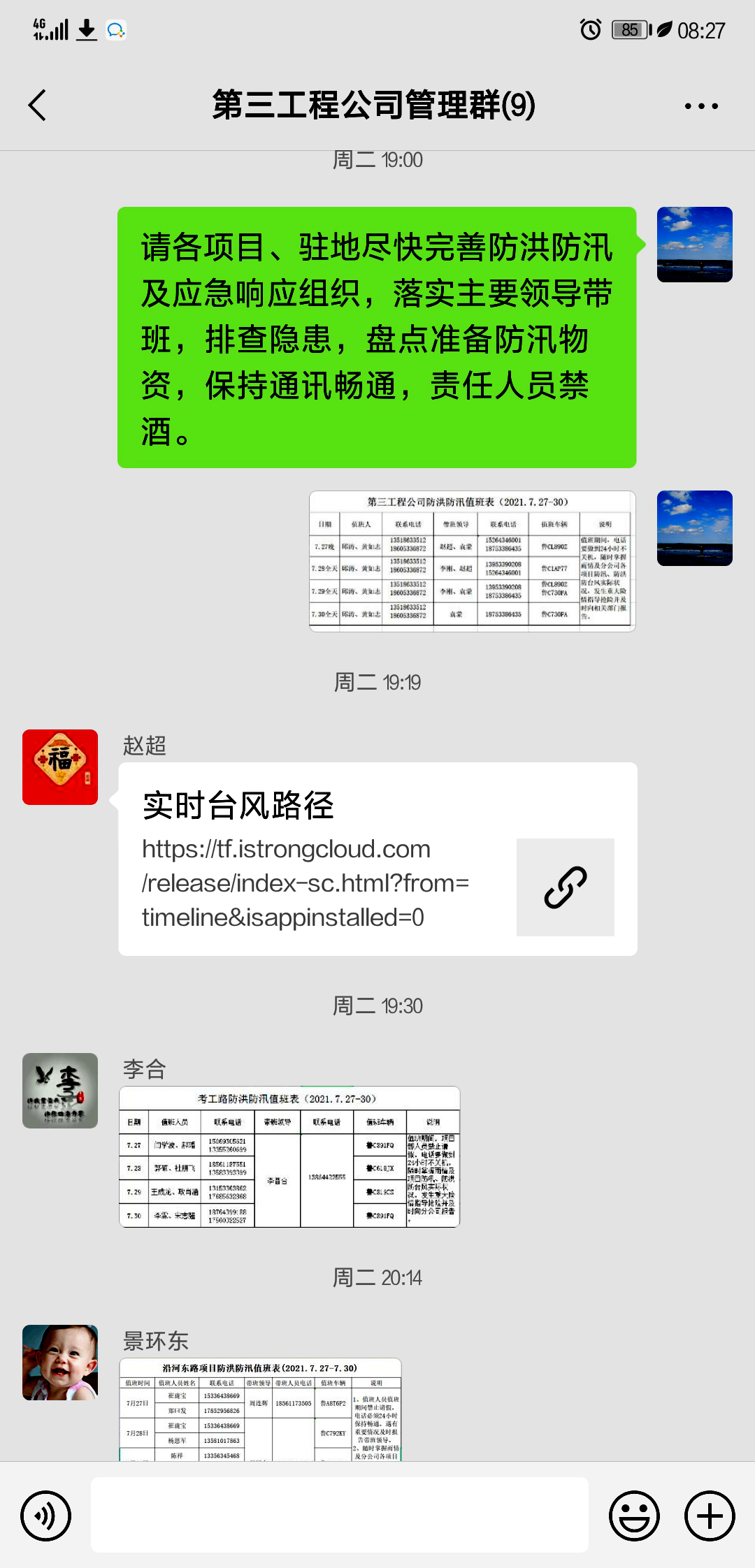 第三工程公司自27日開始不斷關(guān)注臺風(fēng)“煙花”動向,同日第三工程公司通過網(wǎng)絡(luò)會議部署防汛防臺風(fēng)工作,要求所屬所有單位安排人員24小時(shí)值班,考慮到一旦發(fā)生險(xiǎn)情通訊可能會中斷,第三工程公司啟動第二通訊方案,使用對講機(jī)進(jìn)行聯(lián)絡(luò)。各項(xiàng)目,值班人員,值班領(lǐng)導(dǎo),值班車輛24小時(shí)待命。一旦突發(fā)險(xiǎn)情,所有人員物資將第一時(shí)間投入搶險(xiǎn)工作。