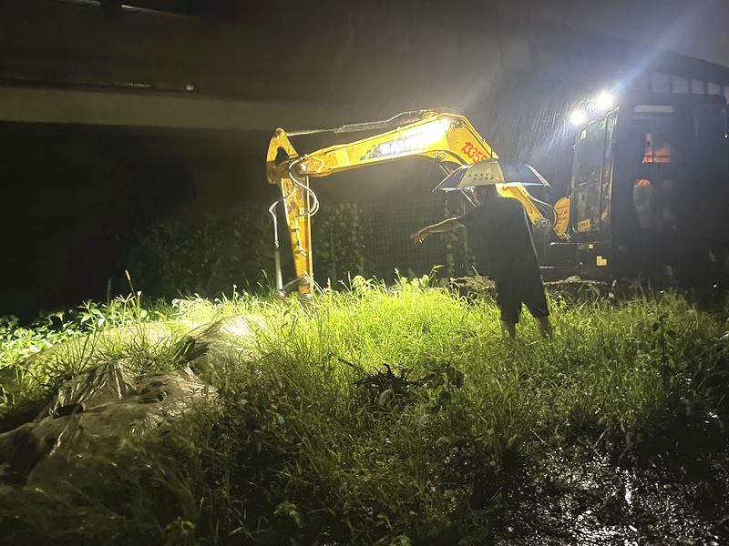 7月28日晚至29日凌晨,各項(xiàng)目按照會(huì)議部署分工,迅速展開(kāi)行動(dòng)。隨著雨勢(shì)增加,部分排水系統(tǒng)出現(xiàn)不同程度的堵塞積水,各負(fù)責(zé)值班人員及時(shí)協(xié)調(diào)挖機(jī)及抽水泵,及時(shí)對(duì)現(xiàn)場(chǎng)情況進(jìn)行處置。分公司領(lǐng)導(dǎo)靠前指揮,實(shí)時(shí)對(duì)現(xiàn)場(chǎng)情況進(jìn)行詢問(wèn),親自協(xié)調(diào)調(diào)度現(xiàn)場(chǎng)排水情況。值班人員以雨為令,落實(shí)值班值守制度,風(fēng)雨中全力拼搶?zhuān)WC群眾人身不受傷害、農(nóng)田不被“侵犯”,一整夜,值班人員對(duì)現(xiàn)場(chǎng)負(fù)責(zé)區(qū)域進(jìn)行盯控排查,每小時(shí)對(duì)負(fù)責(zé)區(qū)域內(nèi)情況進(jìn)行報(bào)備,雨水與汗水交融,崗位與職責(zé)同在。