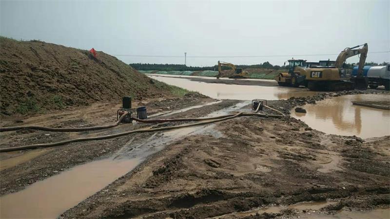 會(huì)議結(jié)束后,各班組人員立即奔赴一線進(jìn)行水毀統(tǒng)計(jì),根據(jù)現(xiàn)場(chǎng)情況制定現(xiàn)場(chǎng)排水方案。對(duì)于現(xiàn)場(chǎng)符合排水條件的路段根據(jù)排水方案展開排水工作,排水完成后及時(shí)進(jìn)行清淤換填,盡早達(dá)到可施工狀態(tài)。對(duì)于因部分路段兩側(cè)高于路基,兩側(cè)均出現(xiàn)雨水滿灌的路段和兩側(cè)為百姓農(nóng)田,排水工作無(wú)法展開的工作路段進(jìn)行現(xiàn)場(chǎng)盯控,符合排水條件后立即組織進(jìn)行排水,壓實(shí)工作、挽回?fù)p失。