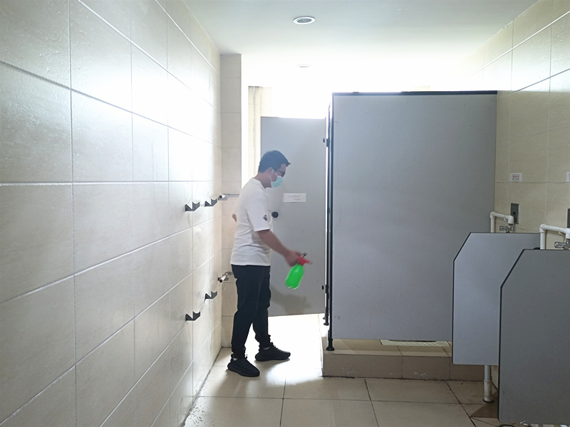 五公司對衛(wèi)生間等生活區(qū)進(jìn)行防疫消毒