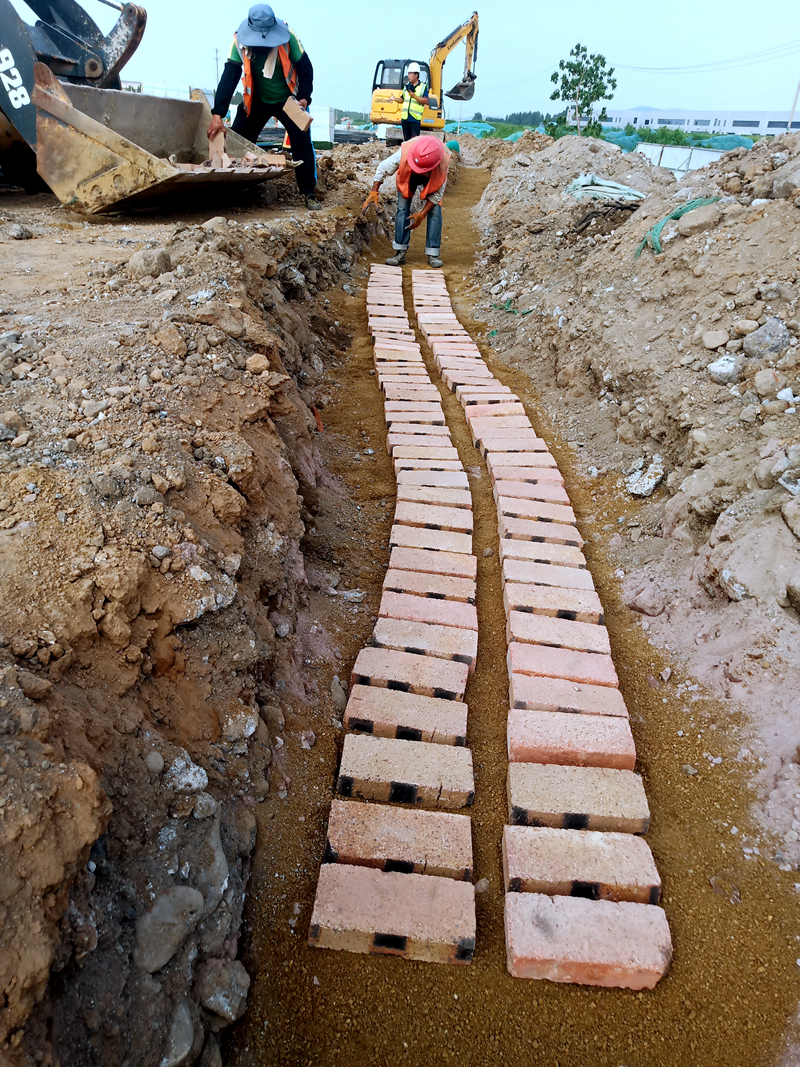 魯中公路第三工程公司,在市政管線施工方面積累有相對成熟的經(jīng)驗。施工前項目部要求所有參加地下管線施工人員,無論以前是否從事過相關(guān)工作,必須接受安全教育與培訓(xùn);特種作業(yè)人員必須持有相關(guān)作業(yè)證;管溝開挖不論深淺,不能有僥幸、冒險心理,必須按照規(guī)范施工操作,在沿河?xùn)|路地下管線施工中,最大限度避免觸及地下管線,地下水線,堤岸設(shè)施等。對觸電,高空墜落,中毒或窒息,物體打擊等管線施工安全高風險源,更是逐一分析,提前制定應(yīng)急預(yù)案。施工人員,熟悉施工圖紙,了解設(shè)計意圖和要求。準備專業(yè)施工工具,開挖、布管、回填嚴格按照臨邊作業(yè)要求施工作業(yè)。