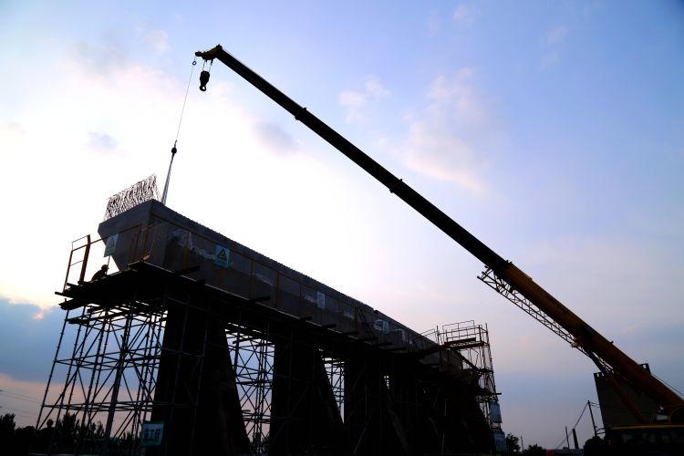 8月3日傍晚6點半,濟濰高速的高架橋仍在緊張施工。