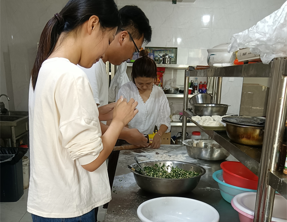 看著一鍋鍋餃子在水里翻騰,誰(shuí)說(shuō)不是象征著美好的心情和生活??粗粋€(gè)個(gè)形態(tài)各異的餃子,每個(gè)人都體會(huì)到了滿足感。當(dāng)餃子上桌后,在各自的作品點(diǎn)評(píng)間,一盤(pán)盤(pán)餃子很快被大家一掃而空。還有什么比自己辛勤付出后的果實(shí)更能打動(dòng)我們呢?
