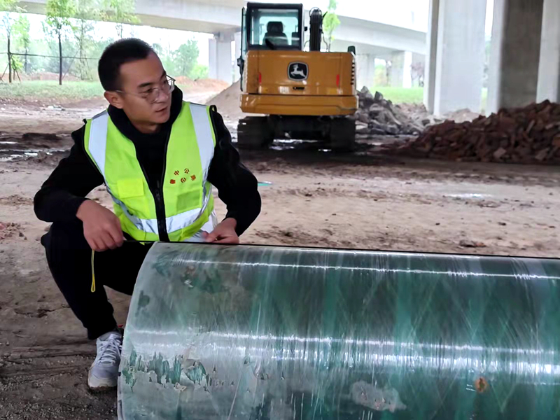 第三工程公司第三項目在雙魯立交橋下展開雨水主線與支線地下管道施工作業(yè)。施工員對進(jìn)場管道與改裝管道進(jìn)行測量檢查。