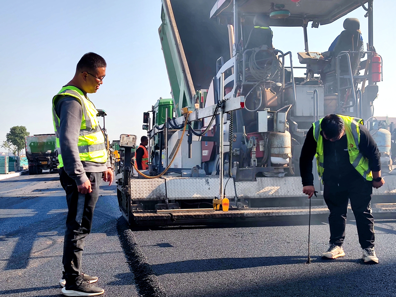 攤鋪厚度隨時檢測,保證每平方松鋪厚度都滿足技術(shù)規(guī)范要求