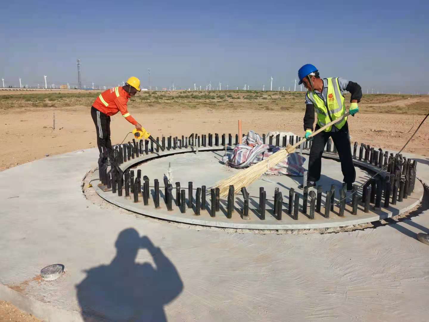 寧夏風(fēng)電項目對每個參建者都是新挑戰(zhàn),空曠的施工場地、強(qiáng)烈的紫外線照射、新的施工工藝等都為所有參建者上了一課,需要保持十二分的戰(zhàn)斗狀態(tài),做好每一細(xì)節(jié)的工作。在施工過程中我們嚴(yán)格按照施工圖及施工規(guī)范的要求進(jìn)行作業(yè),對施工現(xiàn)場遇到的各種問題,及時開會與項目其他人溝通確定方案予以解決,對自檢過程中發(fā)現(xiàn)的問題及時整改完善。