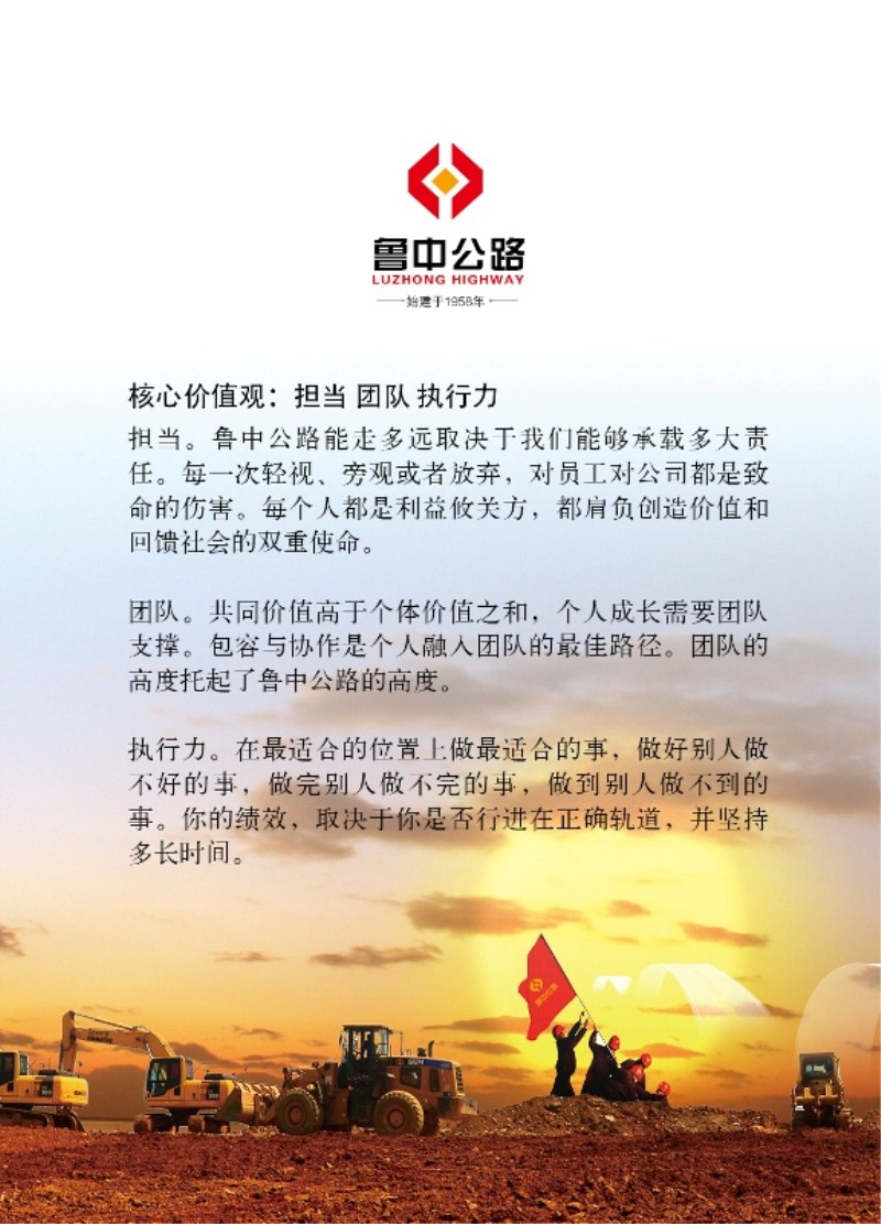 未來(lái)的路還很遠(yuǎn),但我們的信念不變,員工的努力,妻子的支持,孩子的爭(zhēng)氣成就了我們的底氣。我們心中都有一個(gè)夢(mèng),一個(gè)溫暖的,逐漸在清晰走來(lái)的夢(mèng)。渴望在我們這一代人手中,通過(guò)努力打造一個(gè)受人尊重的,充滿生機(jī)與活力的魯中公路。