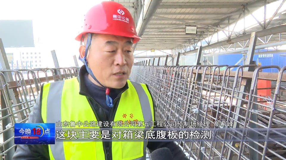 山東魯中公路建設有限公司第五工程公司預制場經理 高希峰:施工過程中,很多情況像吊裝啊,安全性和準確性的要求都非常高,所以每個點每個部位,我都想去盡可能控制到位,所以要及時準確。