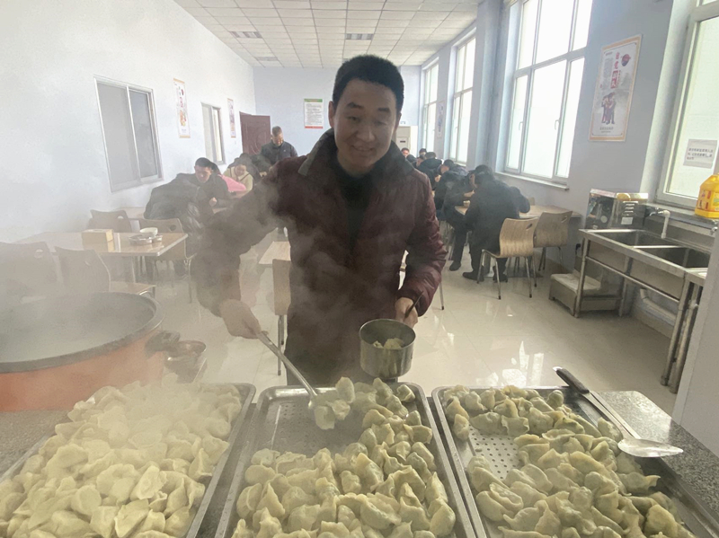 11點30分,熱氣騰騰的餃子出鍋了,同事們爭相來到食堂,品嘗著大餡餃子,那叫一個吃在嘴里,暖在心里。