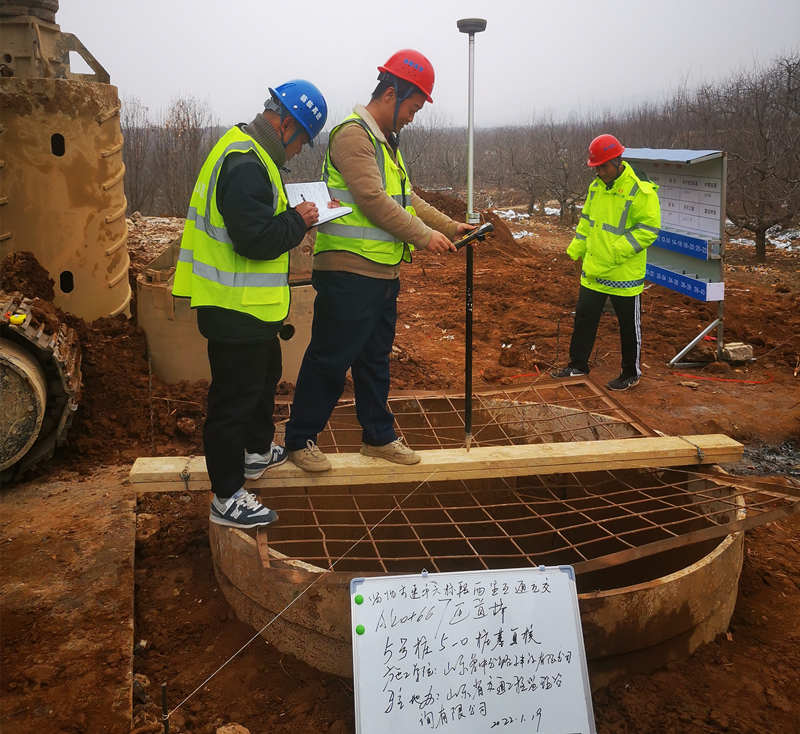 西里互通A匝道橋經(jīng)過(guò)對(duì)全站儀點(diǎn)位坐標(biāo)和水準(zhǔn)點(diǎn)高程復(fù)測(cè),樁基施工準(zhǔn)備工作的確認(rèn)和樁基施工安全技術(shù)三級(jí)交底等緊張有序的施工前期工作后,于2022年1月19日上午10:30,伴隨著轟隆隆的機(jī)械聲順利開(kāi)鉆。