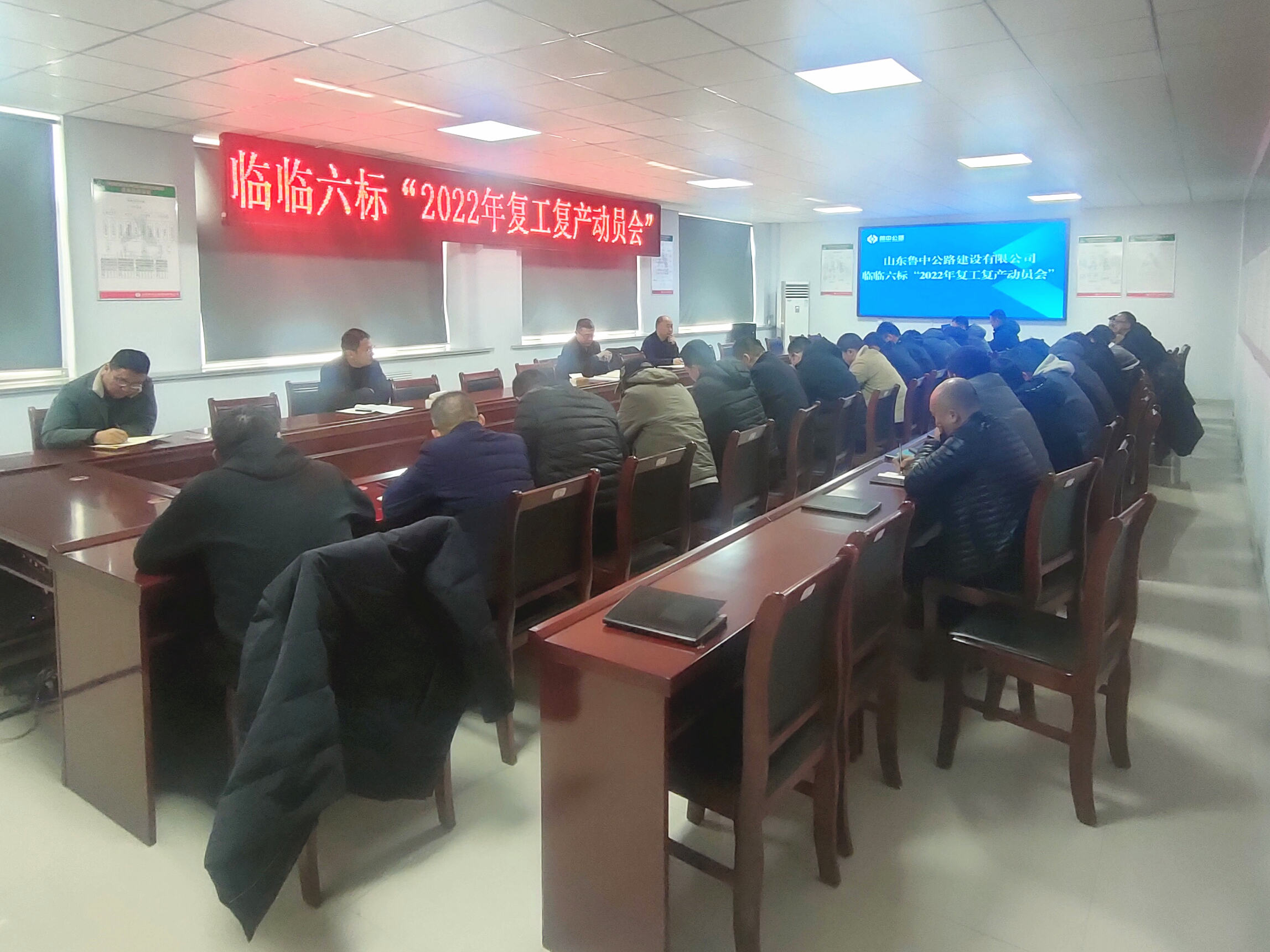 2022年2月8日13時30分,山東魯中公路有限公司臨臨六標(biāo)在項(xiàng)目部二樓會議室召開“2022年復(fù)工復(fù)產(chǎn)動員會”。項(xiàng)目部領(lǐng)導(dǎo)班子、各職能部室及各工區(qū)主要管理人員共計(jì)30余人參加會議。