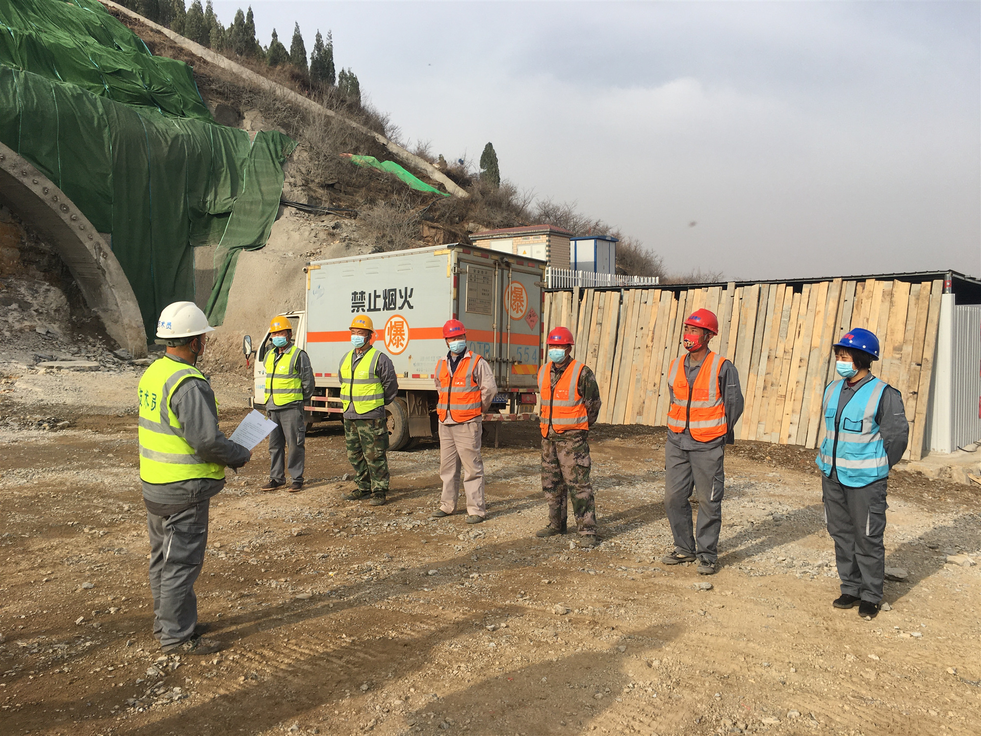 虎山隧道洞口爆破現(xiàn)場班前會(huì)