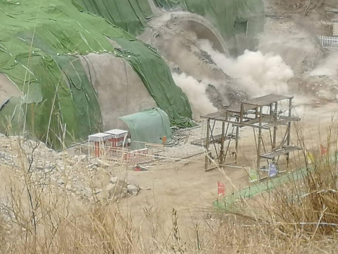 虎山隧道洞口爆破現(xiàn)場