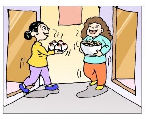 因為不能出小區(qū)門,購物成了難題,特別是超過一周的居家靜止,熱心的鄰居自發(fā)發(fā)動購物團,一起團購水果、蔬菜、雞蛋、面粉等,找到貨源,租用小卡車,送到小區(qū)里分發(fā),瞬間解決了吃飯難的問題,而組織團購的鄰居,往往還自己承擔運費,不讓鄰居們再分擔。
