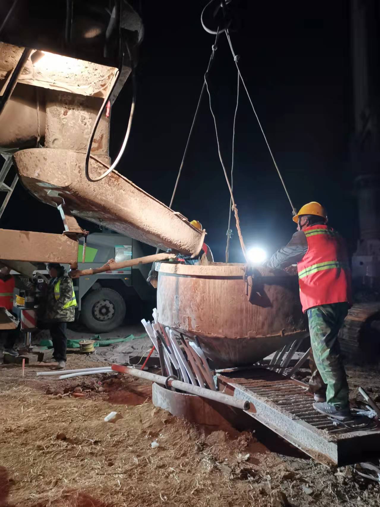 砼灌注施工現(xiàn)場(chǎng)