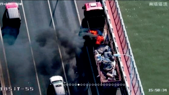 ▲黃埔大橋上?;愤\(yùn)輸車輛和纜索區(qū)域貨車自燃研究表明,引起橋梁火災(zāi)事故的原因多種多樣,包括橋上通行車輛引起的火災(zāi)、電路電器和雷電地震引發(fā)的火災(zāi)、橋下交通事故和易燃易爆炸物體引發(fā)燃爆、施工用電用火引起的火災(zāi)、人為燃燒破壞與爆炸破壞引發(fā)的火災(zāi)等。