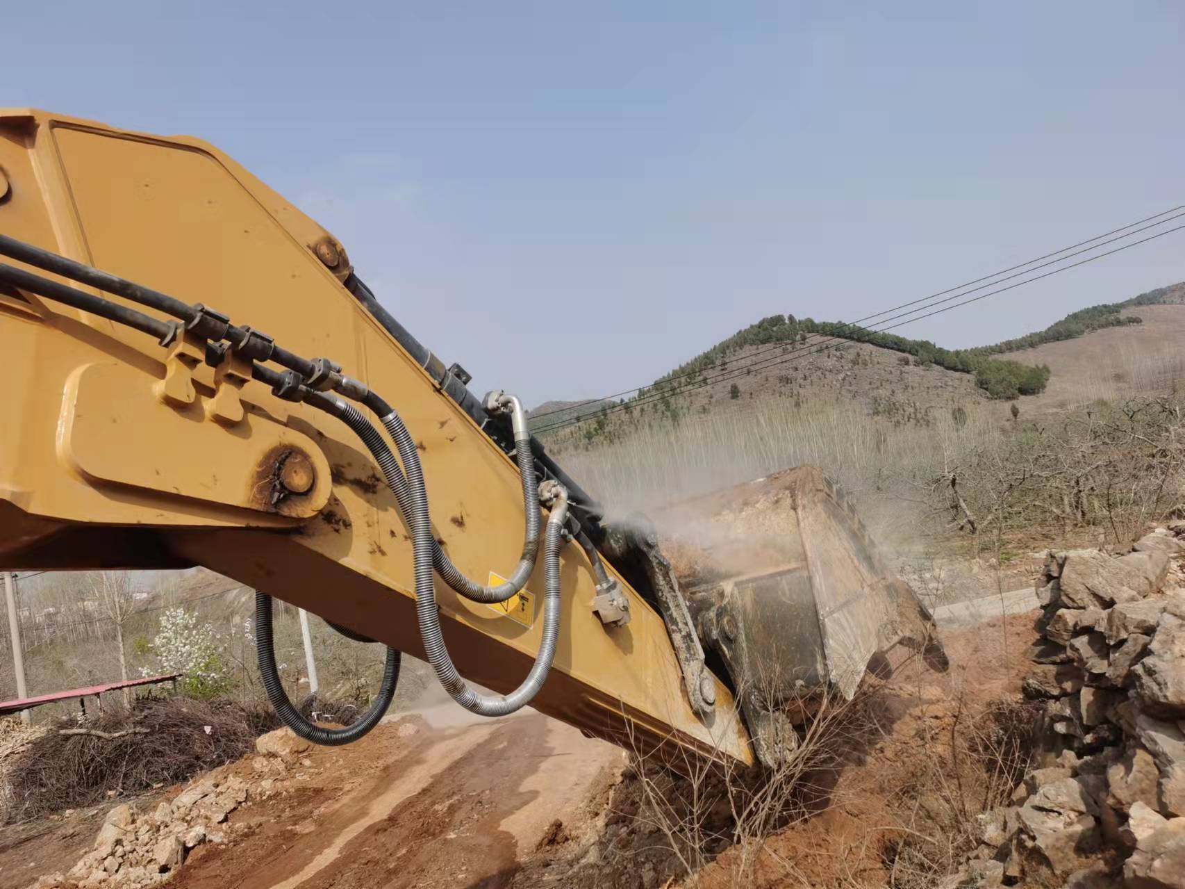 臨臨高速六標抑塵出新招——挖掘機裝上噴淋頭