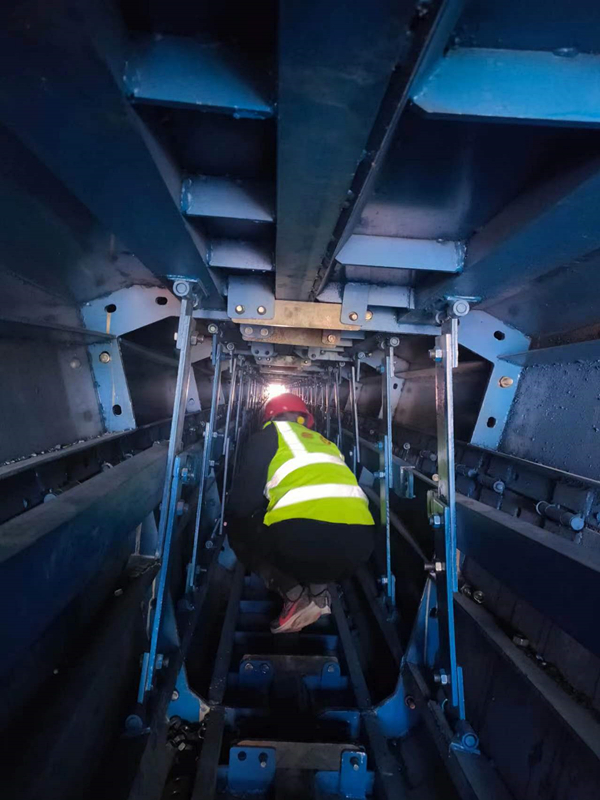 質(zhì)檢人員內(nèi)膜內(nèi)敲擊檢測砼澆筑質(zhì)量