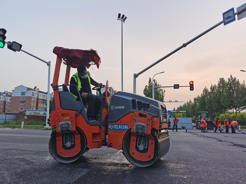 中潤(rùn)大道與胥家路路口瀝青攤鋪