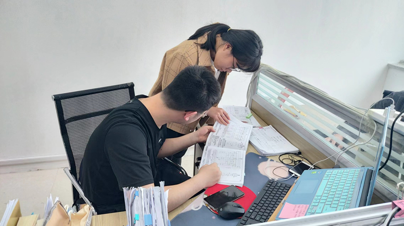 工程技術(shù)部李碰在對分項工程開工報審表進行檢查核實