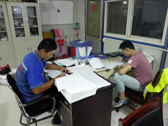 凌晨一點(diǎn)五十分,為了準(zhǔn)備檢驗(yàn)資料還在奮筆疾書的資料員們。