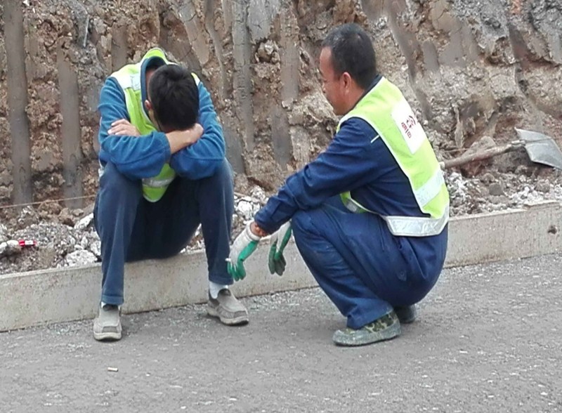 你看施工隊(duì)長(zhǎng)坐在模板上就睡著了、壓路機(jī)司機(jī)把車一停就進(jìn)入夢(mèng)鄉(xiāng)、攤鋪機(jī)司機(jī)連隔噪音的耳機(jī)都不用就睡過(guò)去了。這樣的事情每天在工地上都會(huì)出現(xiàn)??粗@些年輕的施工員和這支奮進(jìn)的施工隊(duì)伍,沒白沒黑的在施工現(xiàn)場(chǎng)拼著體能挑戰(zhàn)極限,往往早飯冷到午飯前了還沒時(shí)間吃,夜以繼日的推進(jìn)著施工進(jìn)度,有誰(shuí)能說(shuō)他們不是在戰(zhàn)斗?