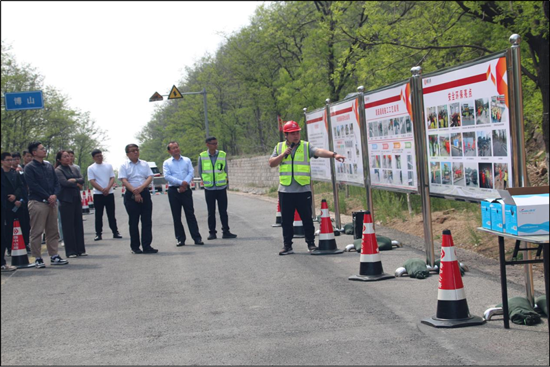 2025年4月27日,淄博市交通運(yùn)輸局組織青年干部60余人到魯中公路承建的S232張魯線博山區(qū)王家莊村至沂源縣草埠段修復(fù)養(yǎng)護(hù)工程現(xiàn)場開展觀摩活動(dòng)。我部技術(shù)人員就大中修路面的病害精細(xì)化處治、灌縫施工的精準(zhǔn)實(shí)施及常態(tài)化安全環(huán)保管理等方面進(jìn)行了詳細(xì)介紹。