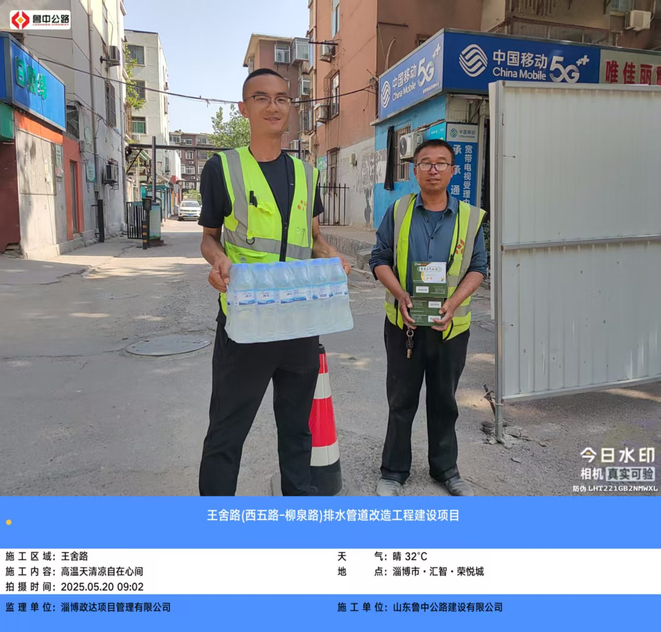 高溫如約而至,熾熱的陽光炙烤著空氣都滾燙灼人,魯中公路市政工程王舍路項目工地圍擋邊的水車,上用水炮、下用地噴,雙管齊下進(jìn)行抑塵降溫,施工人員搶抓早晚時間,突擊大干,項目部向一線作業(yè)人員發(fā)放無醇藿香口服合劑和飲用水,將夏季生產(chǎn)后勤保障工作做到實處,將清涼及時送達(dá)到每一位公路人手中。