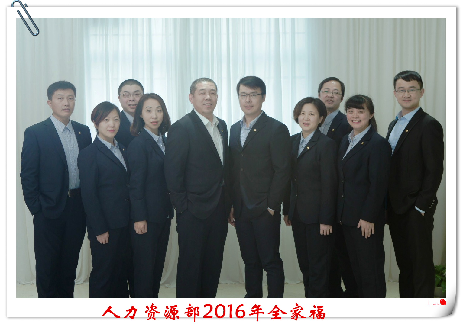 單絲不成線,獨木不成林,家和才能萬事興。人資部是我們的小家,魯中公路是我們的大家。當攝影鏡頭對準我們,拍下這張幸福的全家福的瞬間,我們笑了,發(fā)自內(nèi)心的笑了;我們驕傲,我們驕傲現(xiàn)在擁有的這一切;我們幸福,我們更愿意通過努力把這份幸福無限的延長。嶄新的一年就要來臨了,我們每個人心中都充滿了期待,來時的路我們相扶相伴,未來的路我們?nèi)詴渴窒嘈?,我們相信,?017年的工作中,我們?nèi)肆Y源部將會一如既往的團結(jié)向前,進一步解放思路,放開手腳,更加靈活、高效、自動的去做好每一項工作。家和萬事興,心齊泰山移,2017,人資部加油!2017,魯中公路更上一層樓!
