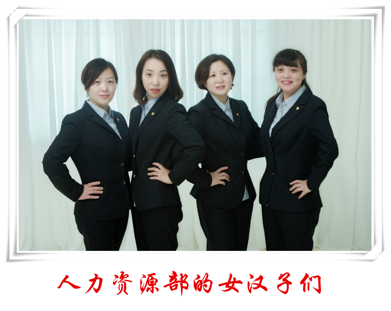 這就是我們的人力資源部,在這一家子里面,每個人都個性鮮明,有閃光點也有小脾氣,在一起我們有笑有淚,有收獲也有成長。我們彼此互補,又彼此汲取正能量,一點點磨合下來,我們越來越親近,團隊的幸福中處處洋溢著我們的精氣神。